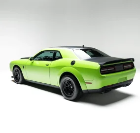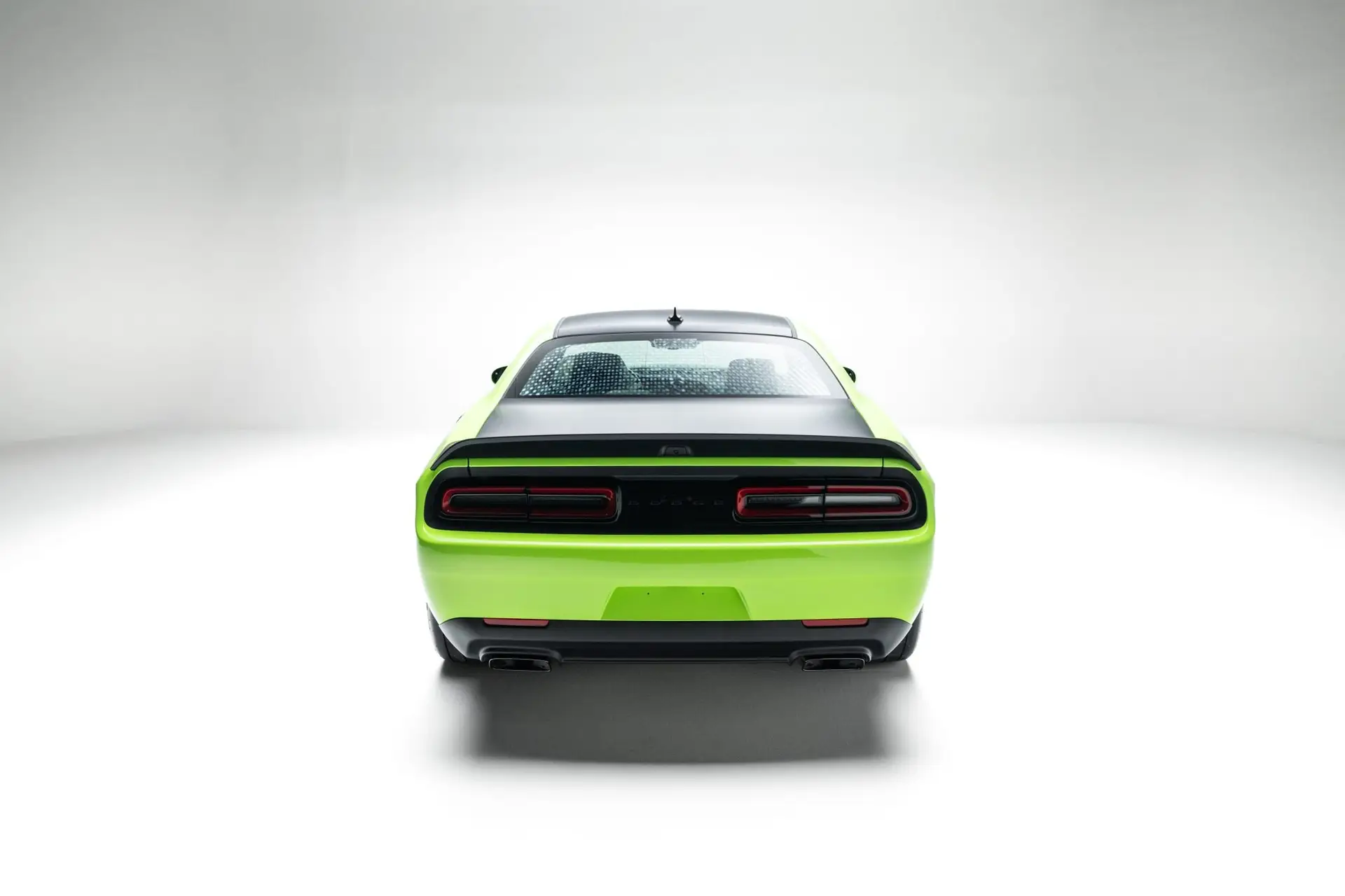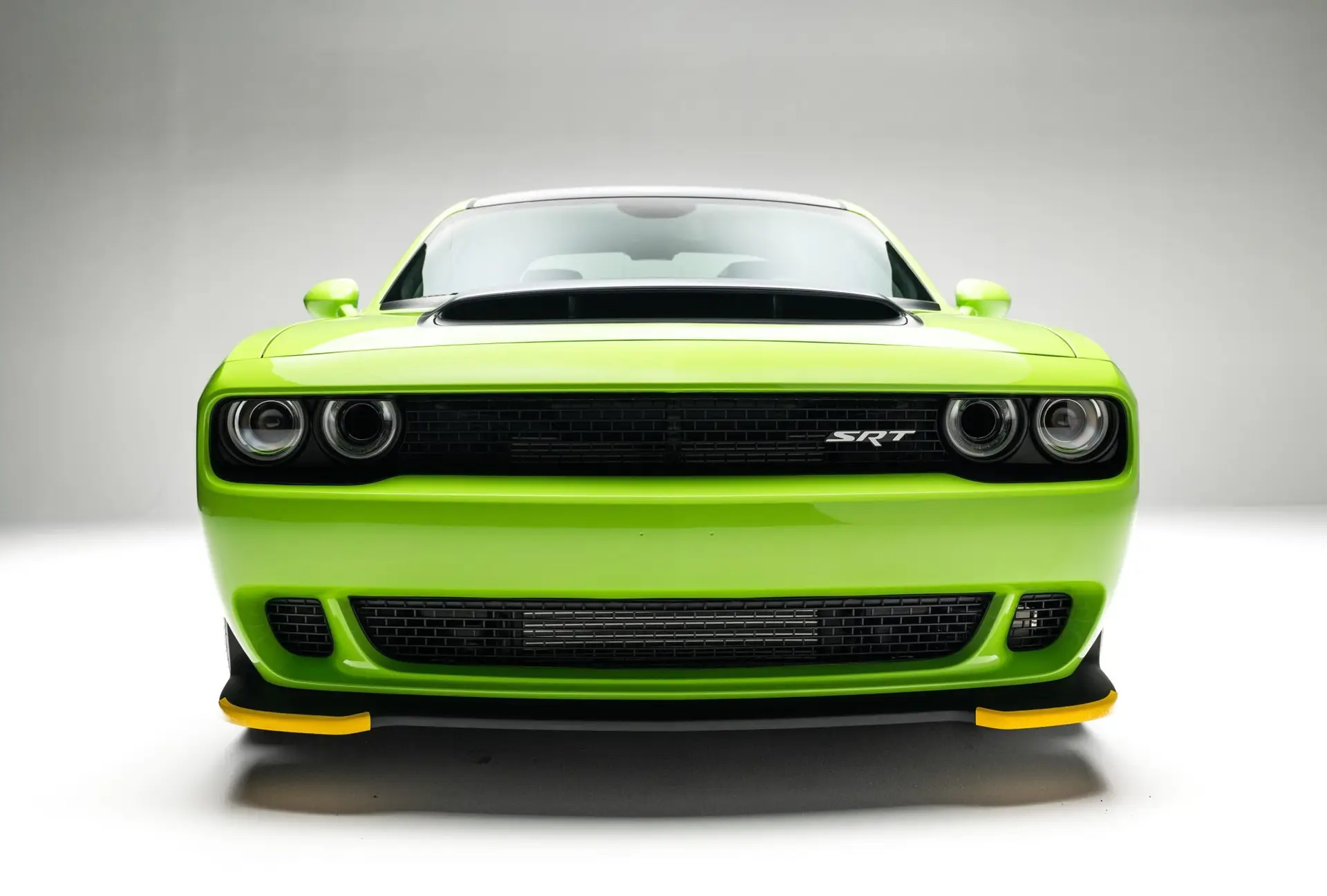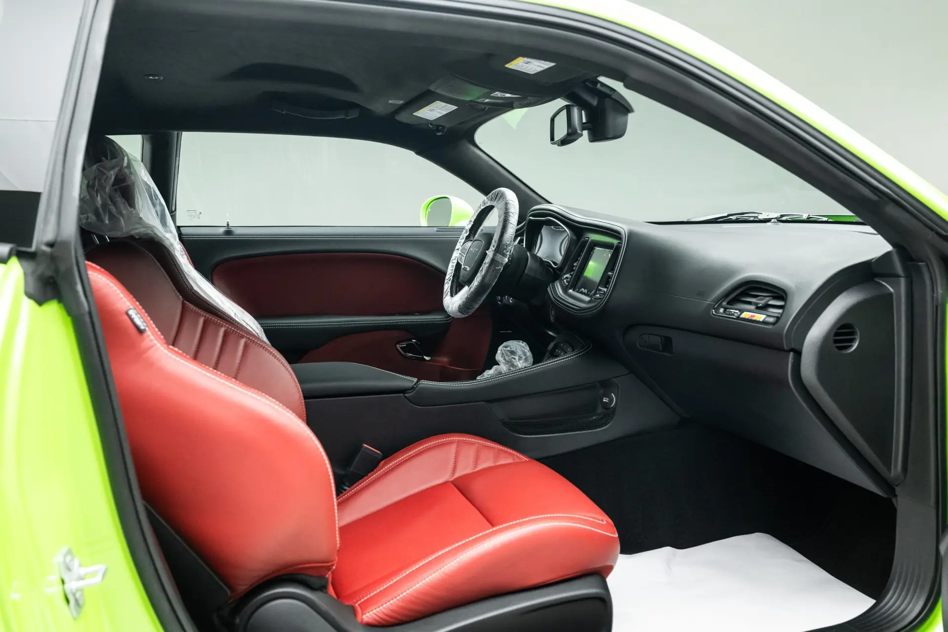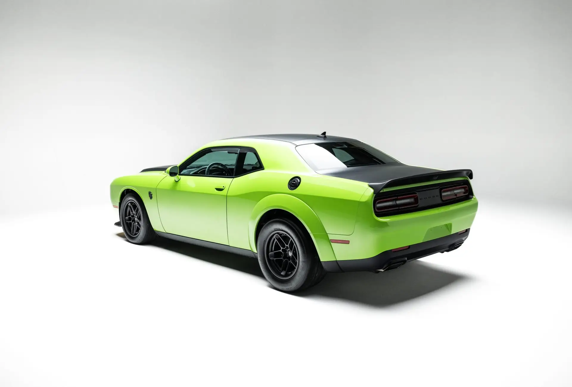Dodge released seven different Last Call special editions for the 2023 model year to celebrate the end of production of the Charger and Challenger, and the Demon 170 was the final special edition variant. This example is finished in Sublime Green (PFB) and features an Air-Grabber hood with āAlcohol Injectedā lettering on the hood-scoop bezel. Other exterior details include a front splitter that has retained its yellow scuff guards, Air-Catcher HID headlights, flared rear quarter panels, satin black roof and rear decklid graphics, dual exhaust outlets, and an SRT Performance rear spoiler with an integrated rearview camera.