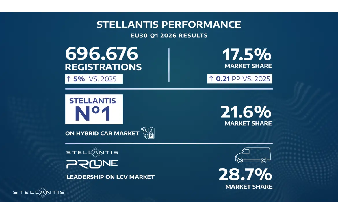 Stellantis has opened 2026 with positive momentum, reporting a 5 percent increase in sales across the EU30 vehicle market during the first quarter. The growth highlights steady demand and a solid performance across multiple brands within the group.